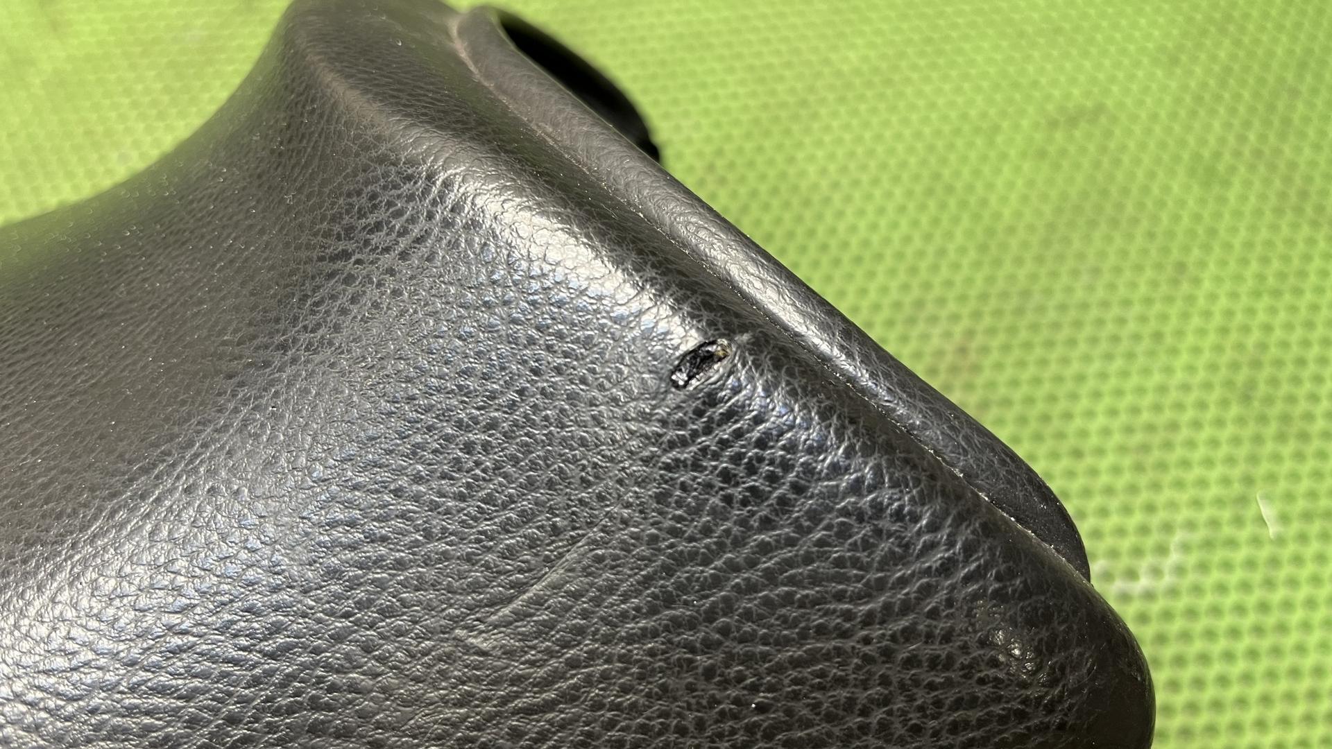 Есть повреждение кожзама. Смотрите фото.