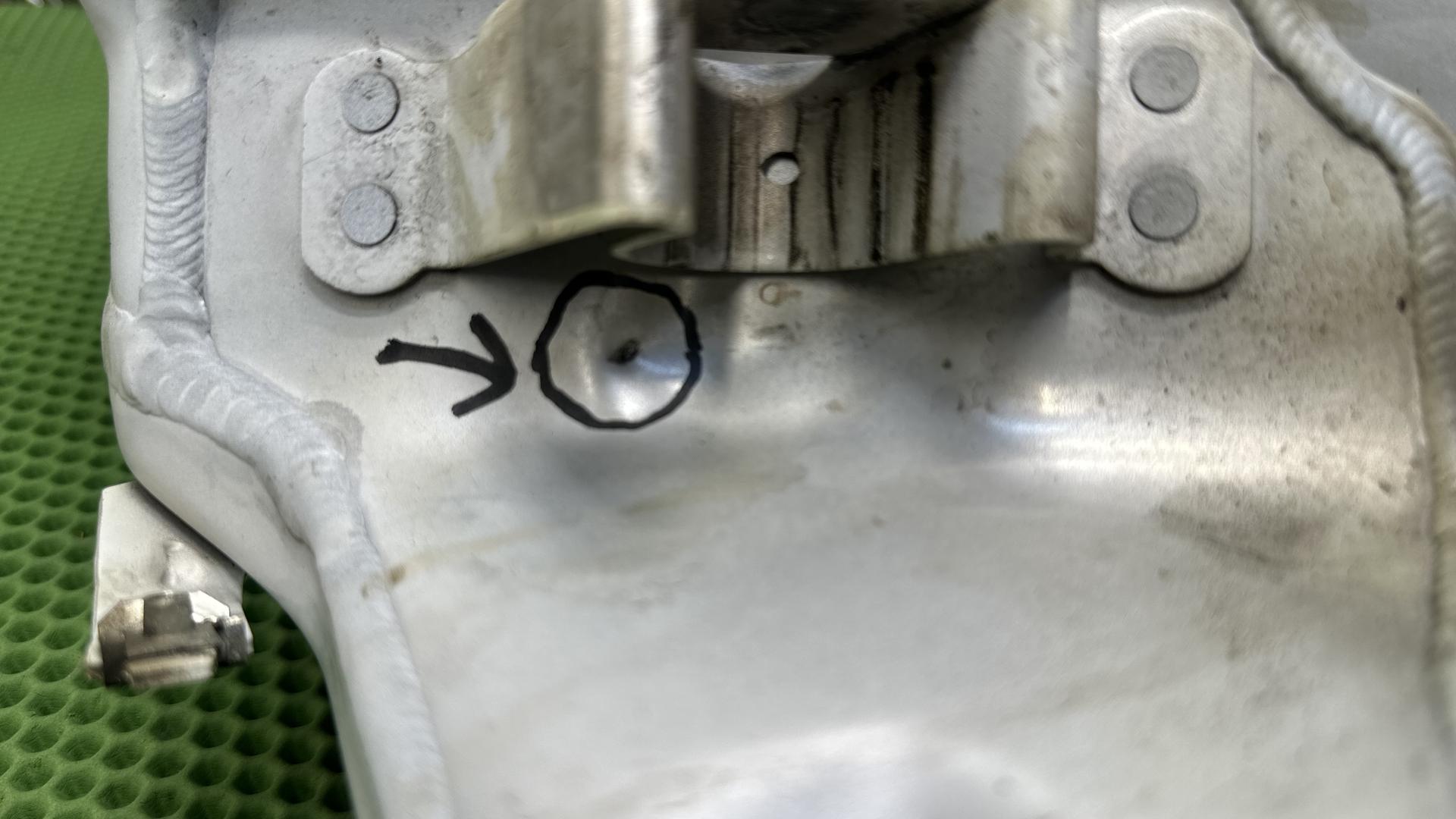 Пробит в одном месте со стороны рамы, требует сварки