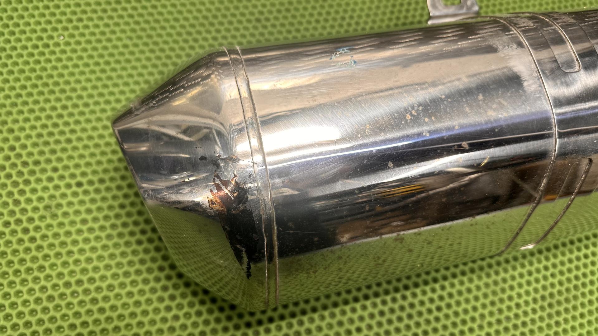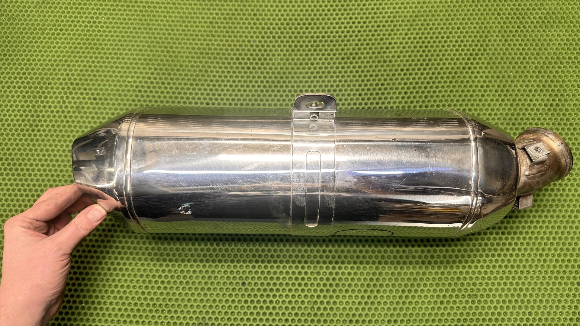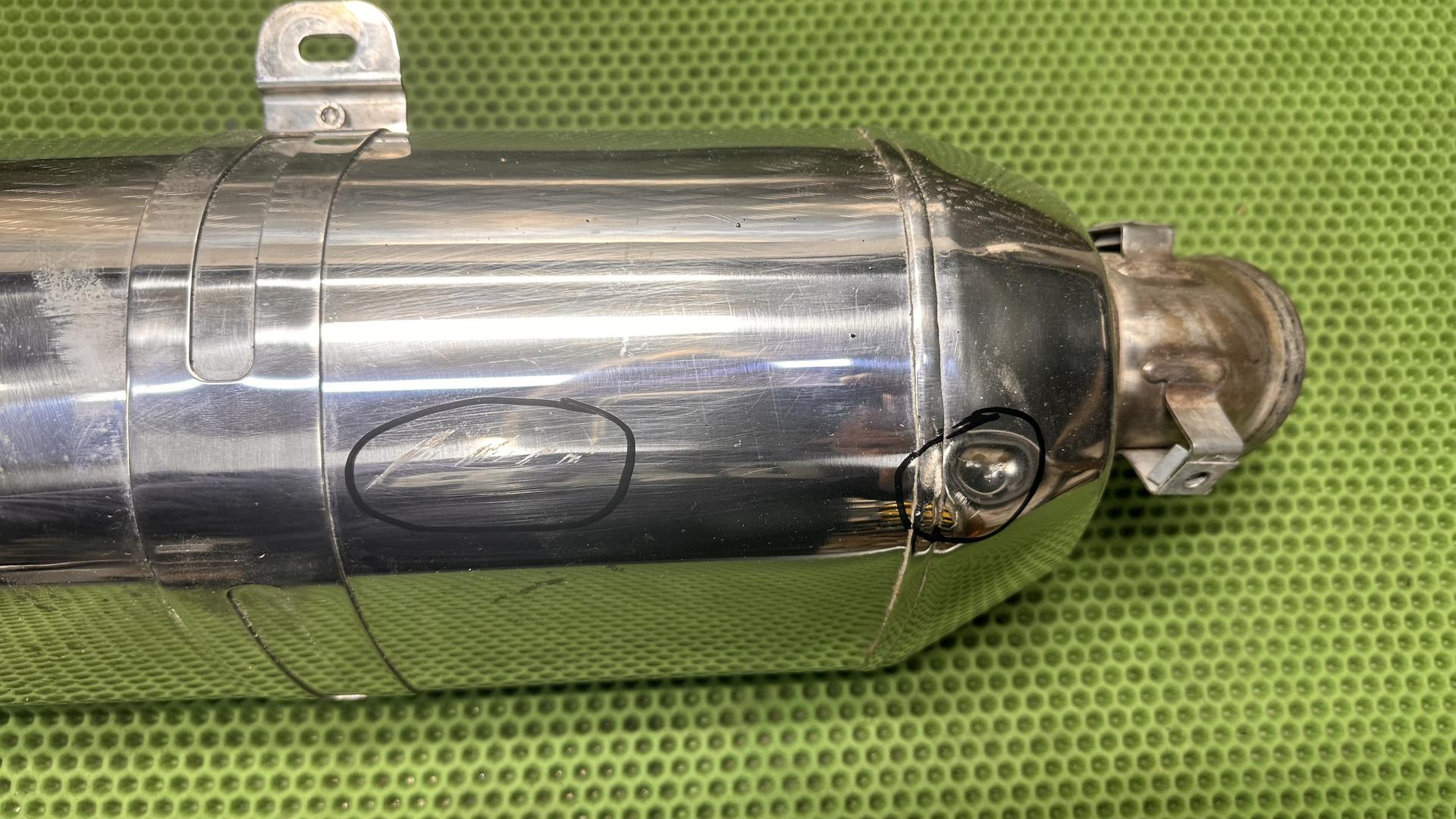 На лицевой части глушителя есть царапины и маленькая вмятина, смотрите фото. Глушитель 2015 года в полностью исправном состоянии
