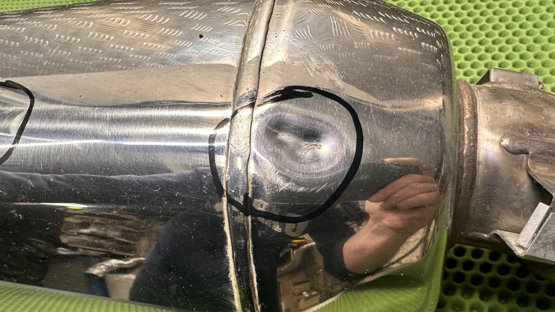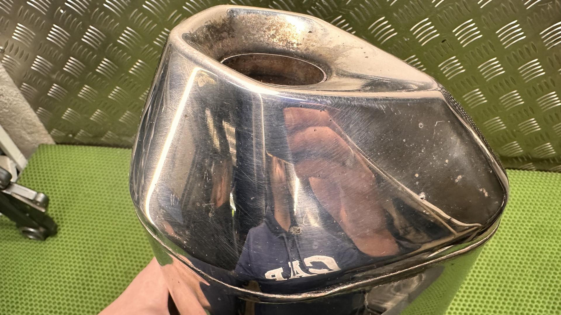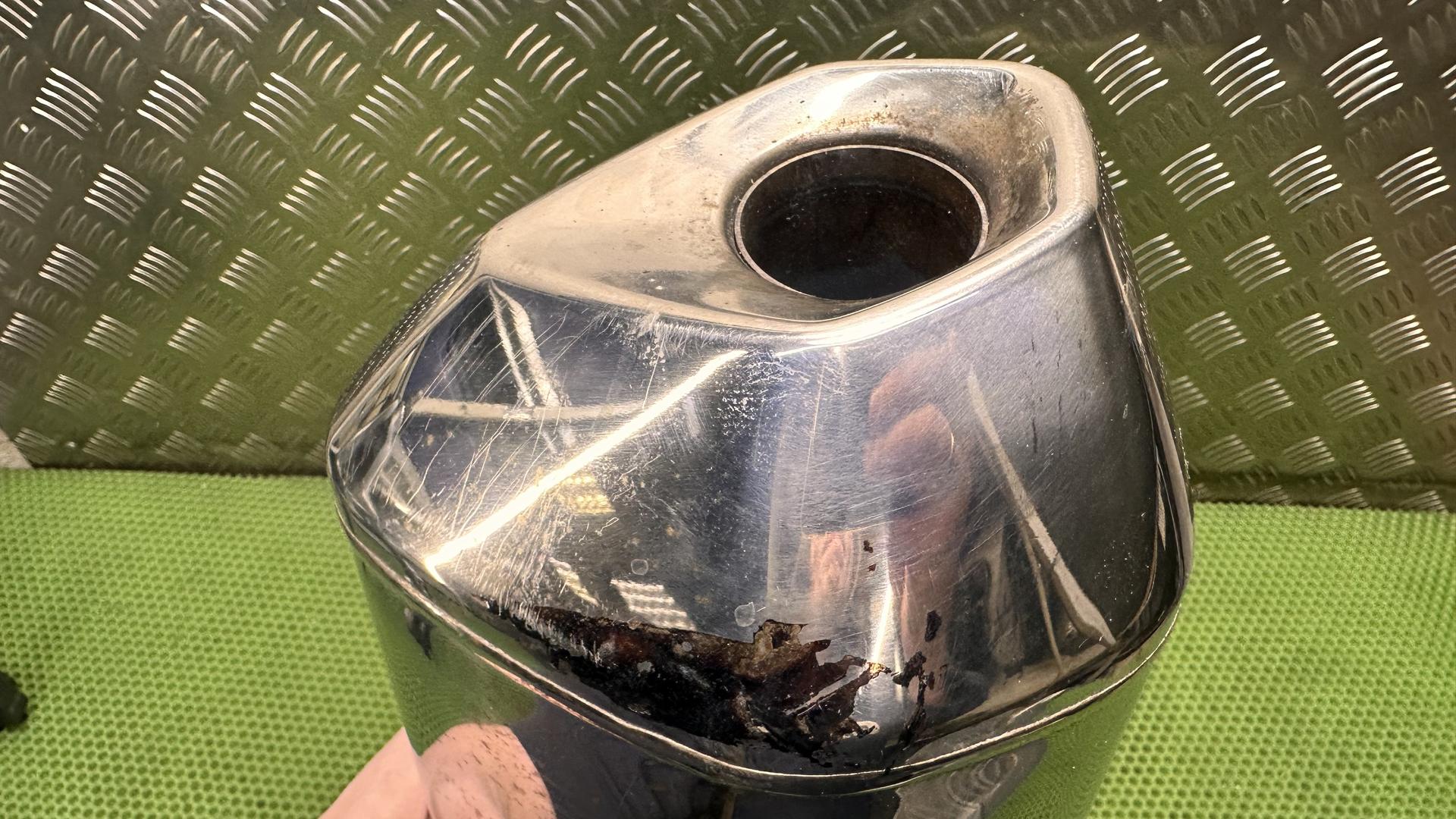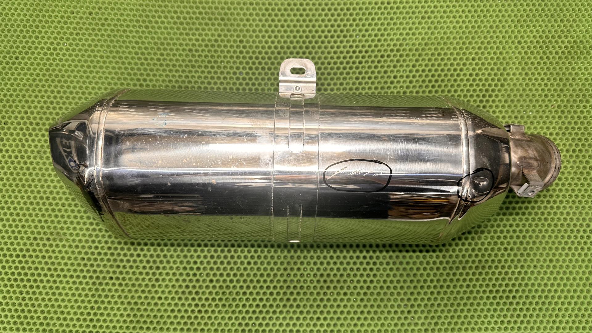 На лицевой части глушителя есть царапины и маленькая вмятина, смотрите фото. Глушитель 2015 года в полностью исправном состоянии