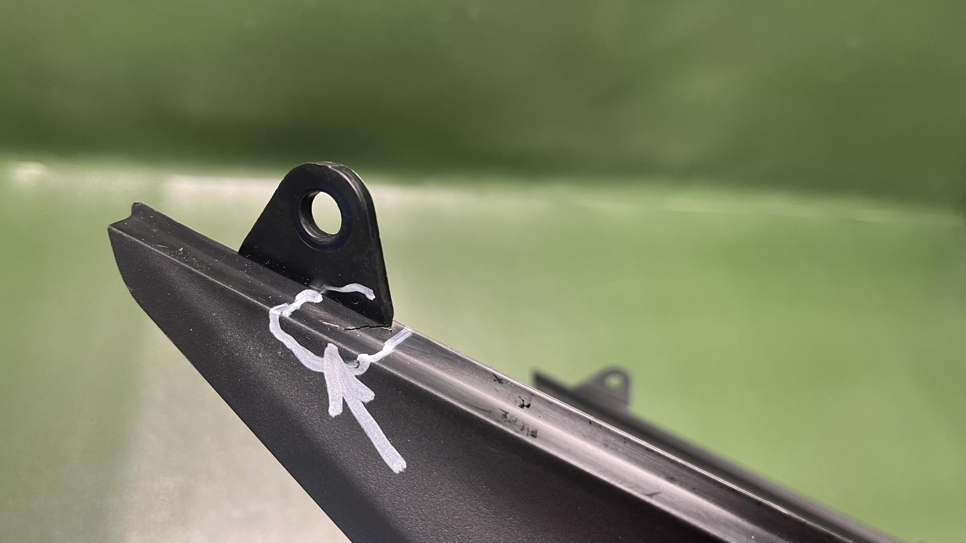 Кронштейн с левой стороны имеет дефект, надорвана серьга крепления (Смотри фото)