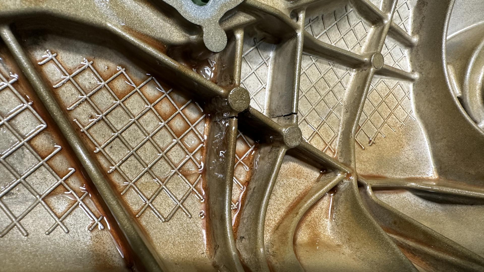 Есть вмятина и трещина на ребрах усиления, на моторе стояла без протечек.