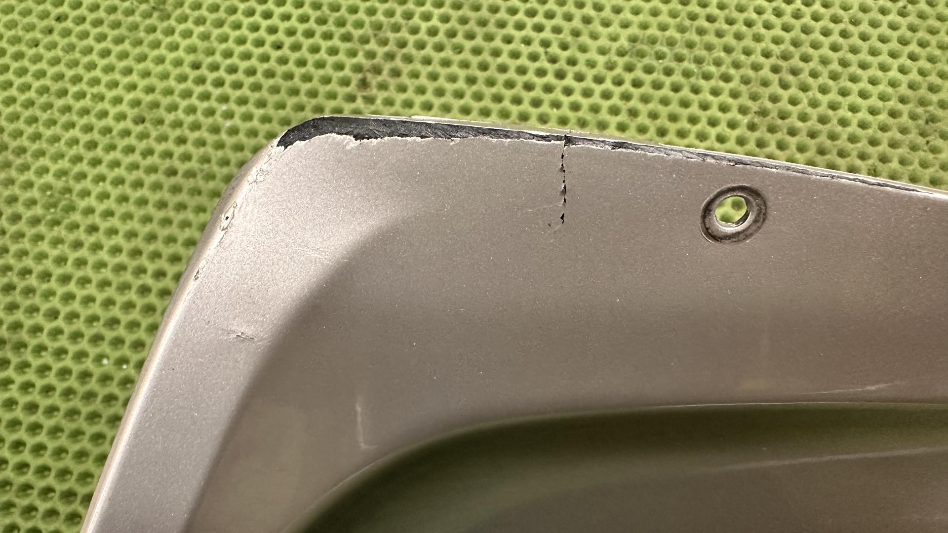 Есть зетертость пластика по ребру, смотрите фото