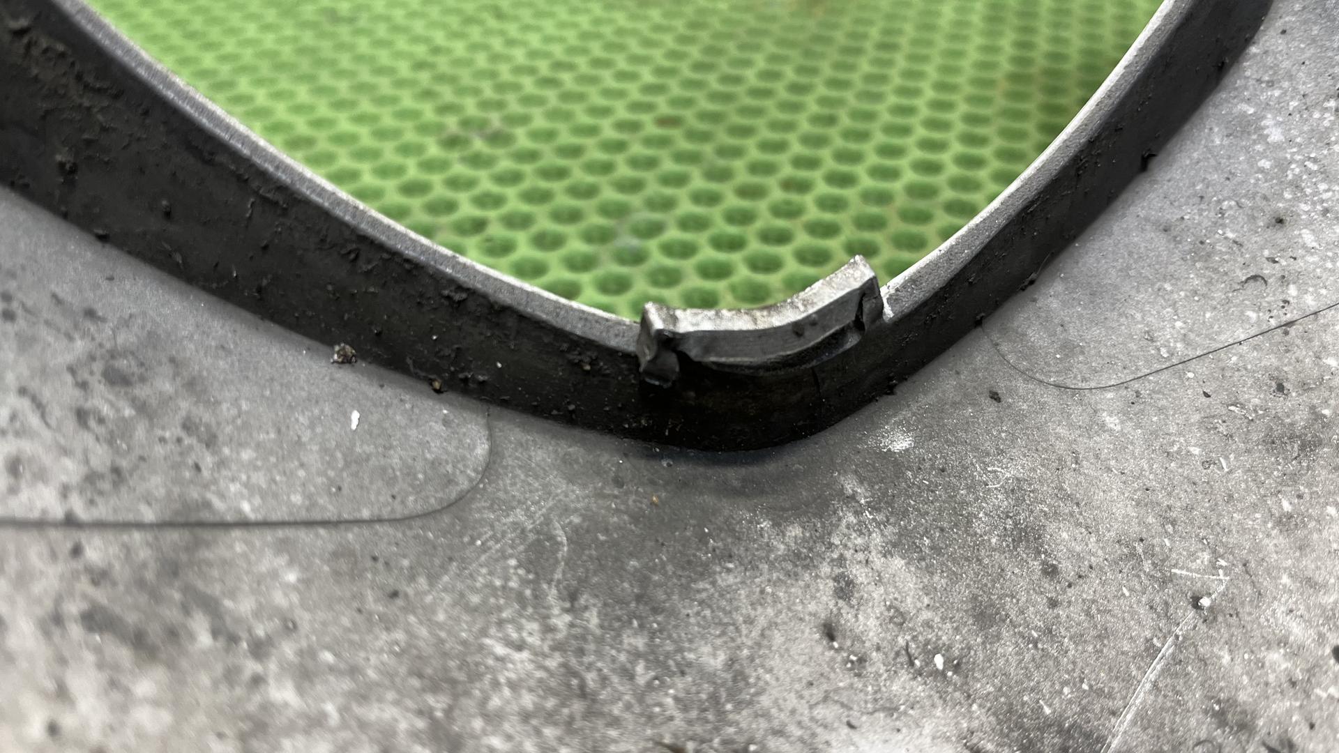 Подломано фиксирующее ухо крепления накладки посередине, смотрите фото