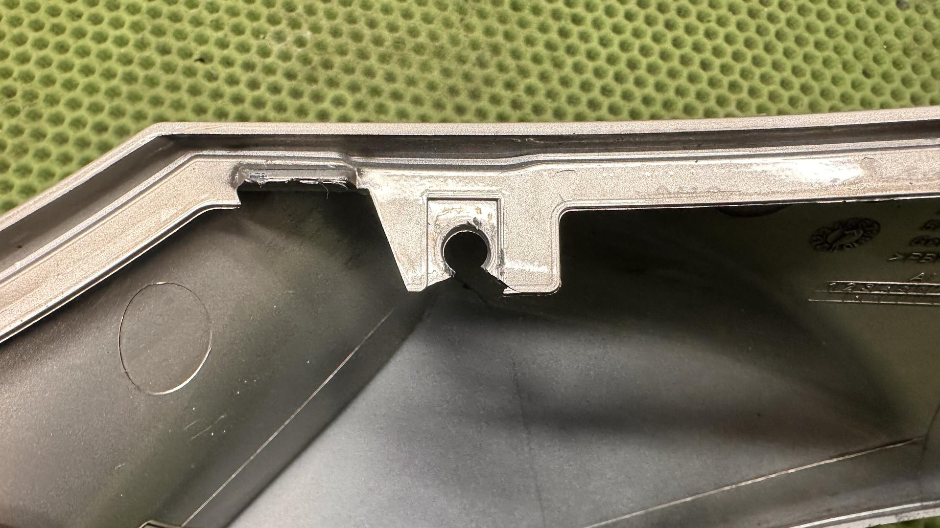 Одно ухо крепления надломлено, никак не влияет, смотрите фото