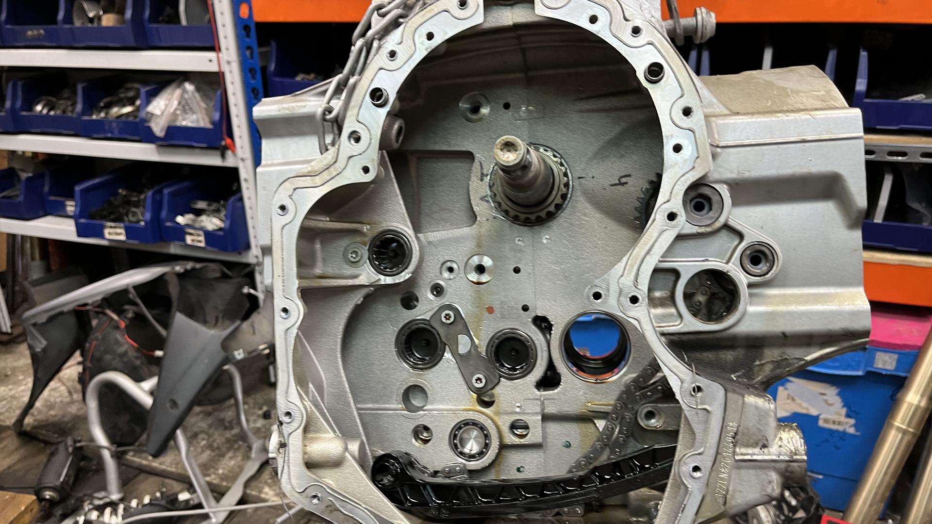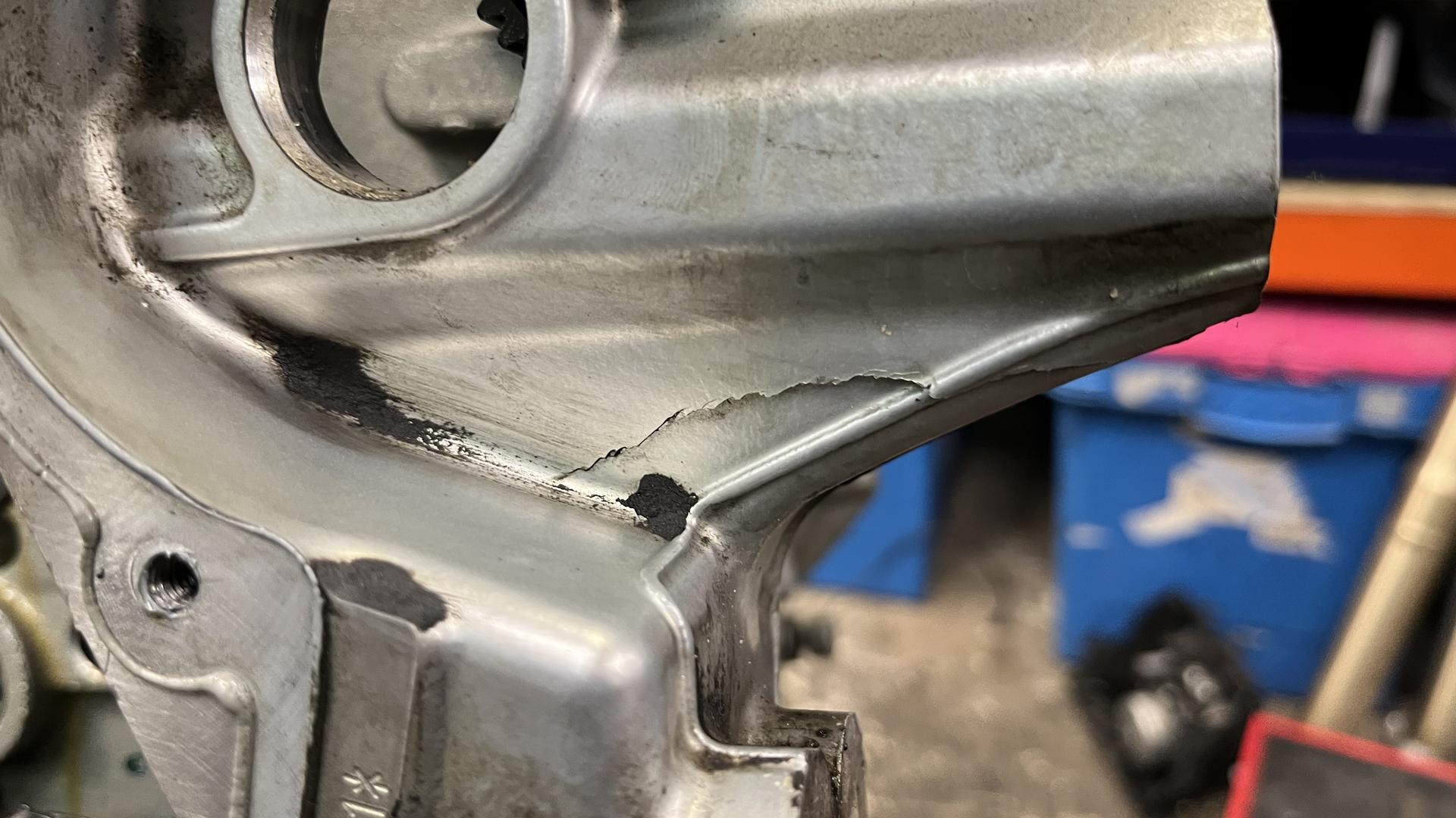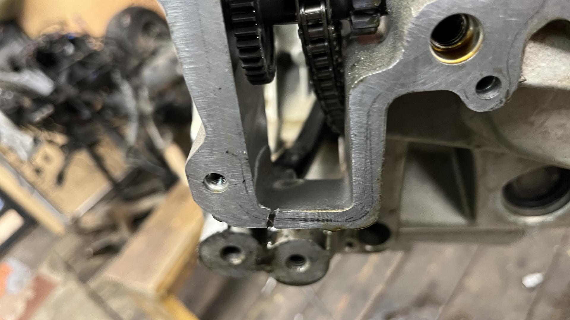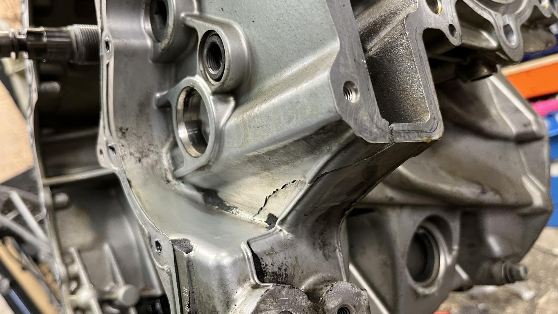 Шорт блок имеет трещину см фото . В боке есть хороший коленвал , 2 шатуна с поршнями , масляный насос