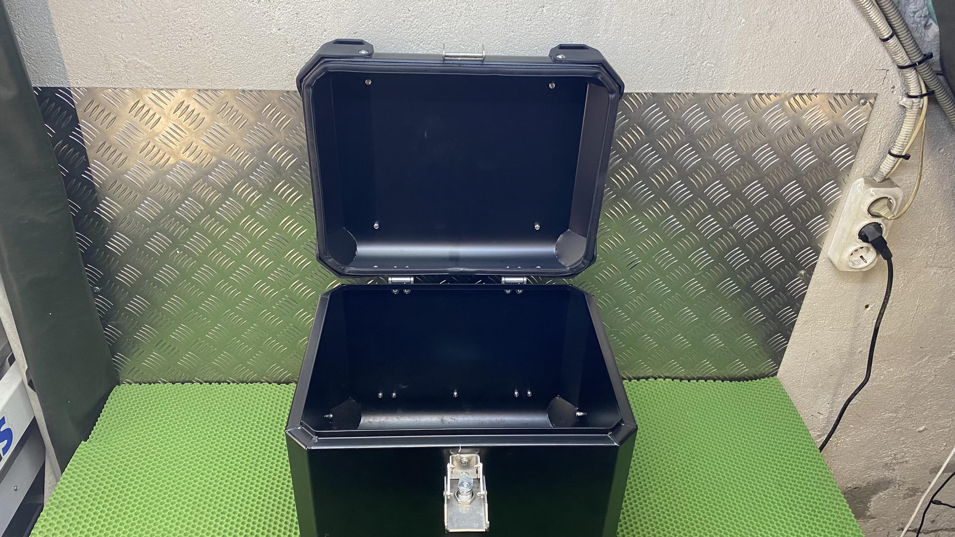 Центральный кофр BuMot. Размеры 35х45х40 (ГхШхВ) см. Отсутствует ключ от личинок, кофр открытый