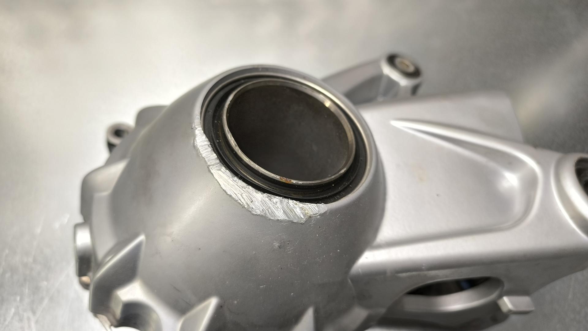 Есть затертость на нижней части картера в зоне сальника.