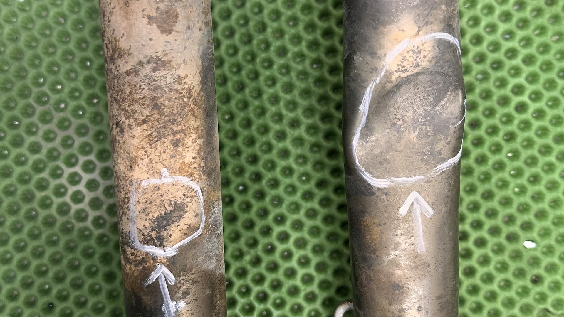 Есть вмятины на обоих трубах, смотрите фото